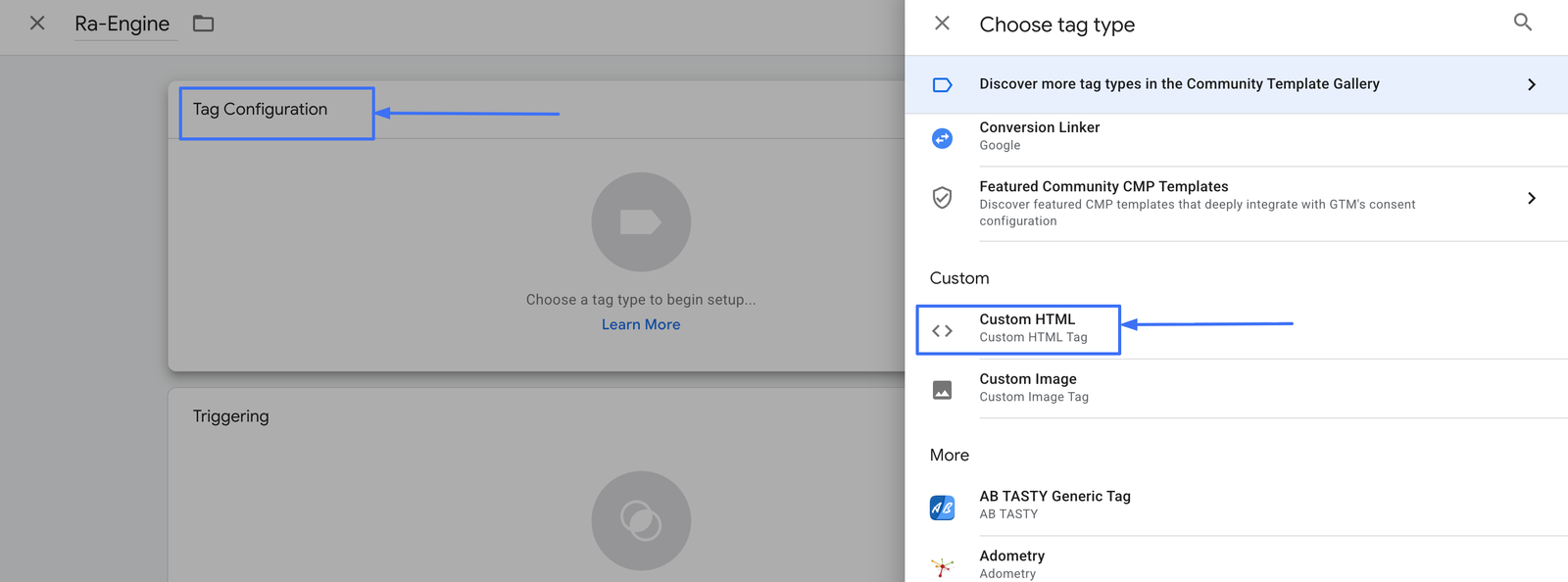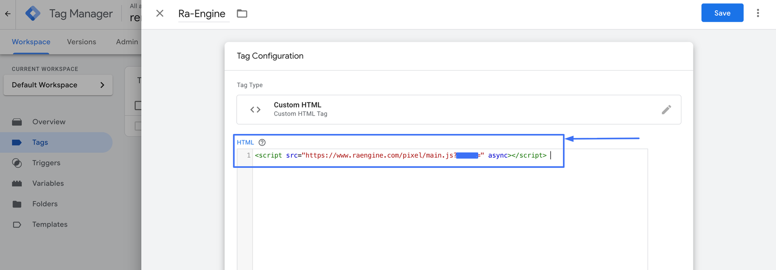 Your website is already connected to GTM, integrating the RA-engine tag is quick and simple. Just follow the guide below to get your tag live. Please make sure the tag is not placed inside an iFrame, as that will affect our ability to run your campaigns properly.